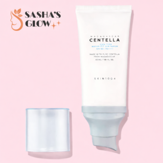 The SKIN1004 Madagascar Centella Hyalu-Cica Water-Fit Sun Serum is a lightweight SPF 50+, PA++++ sunscreen that feels just like a serum. It absorbs quickly, gives strong UVA & UVB protection, and leaves no white cast.